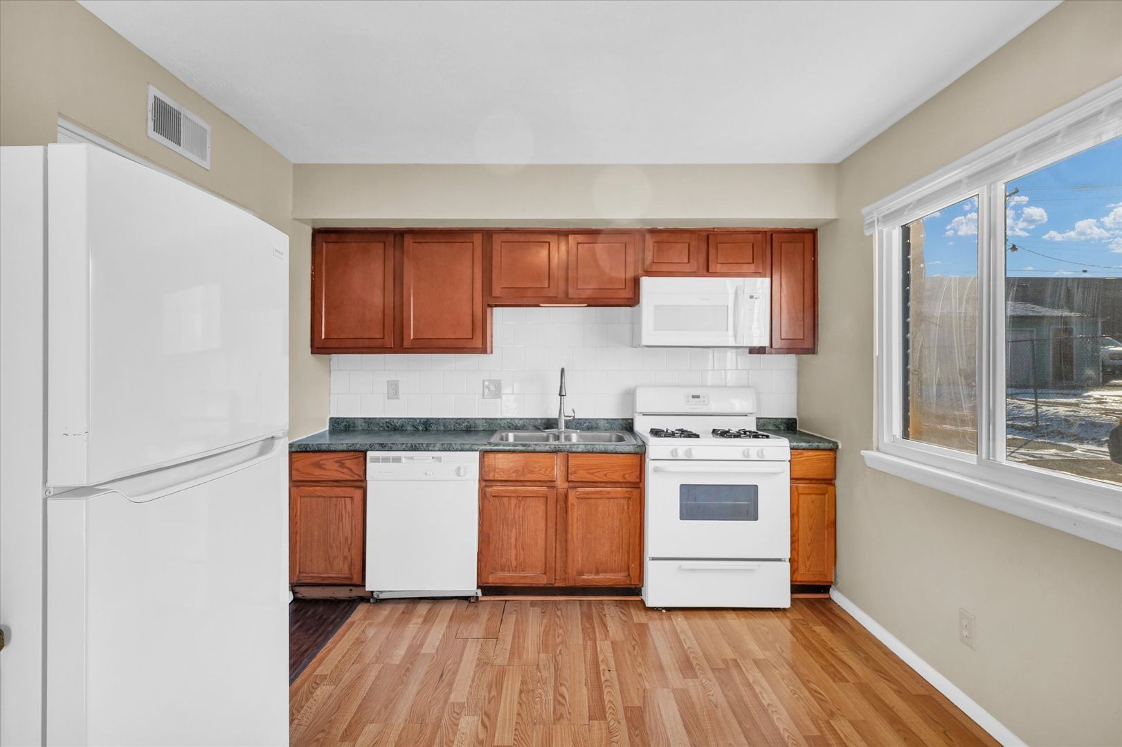 The kitchen comes fully equipped with a dishwasher, microwave, stove/oven, and refrigerator—everything you need to make everyday living simple. Whether you’re whipping up dinner, relaxing in the living room, or hosting a guest, this apartment is designed to feel like home from the start.