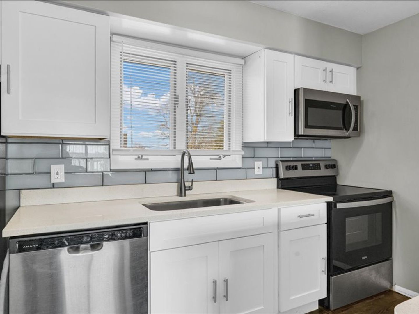 Stainless steel kitchen appliances & new white cabinetry