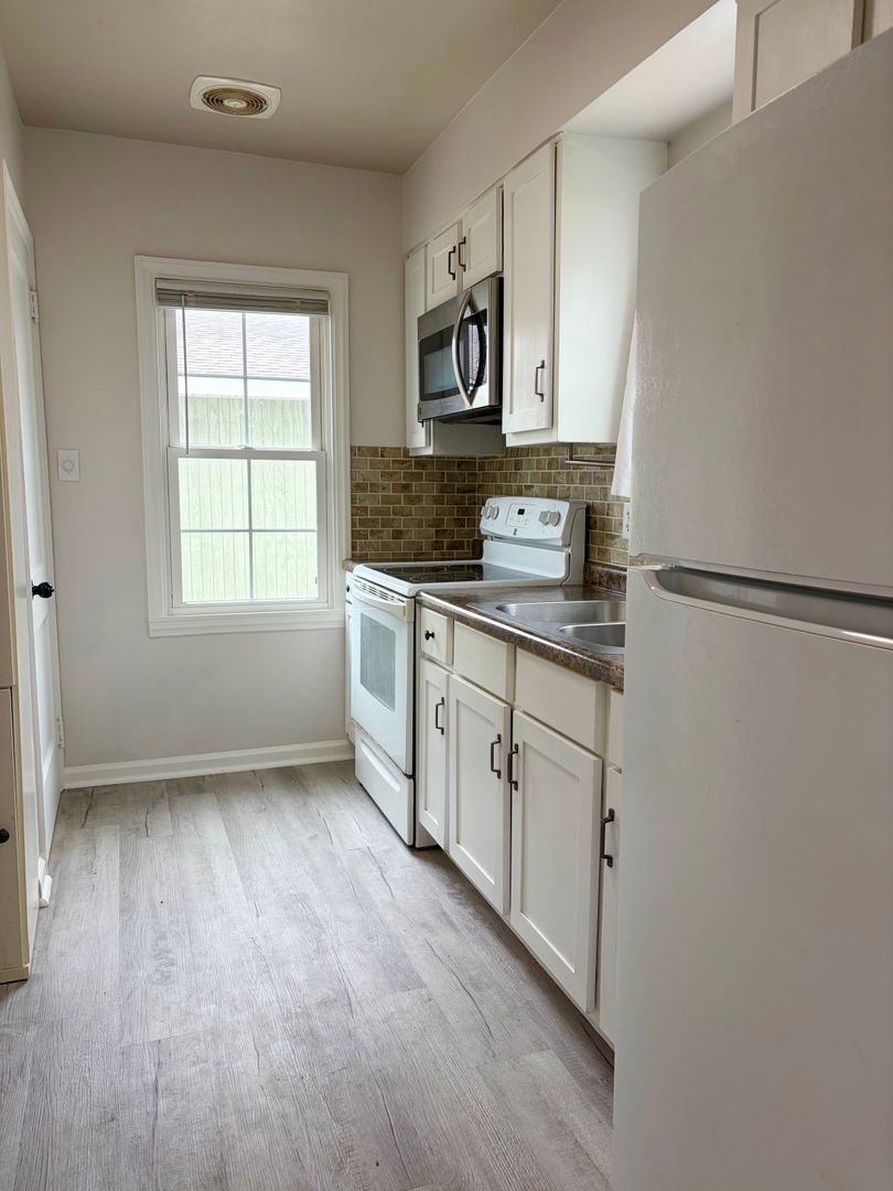 Discover this well-appointed 2-bedroom, 1-bath home in Normal featuring modern finishes and practical comforts. The living room, kitchen, and bath showcase luxury vinyl plank flooring, while hardwood floors add warmth throughout other areas. The kitchen includes stylish modern countertops and cabinetry with contemporary fixtures. Enjoy the convenience of in-unit washer/dryer and central air conditioning and heat.